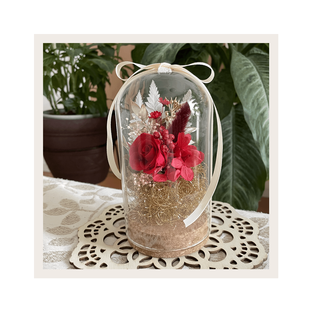 生花を加工したプリザーブドフラワー、ドライフラワーです。水や日光を与える必要はありません。そのままの姿で長期鑑賞可能です。自然素材使用のため月日の経過で多少の変化は伴いますが、作品の風情としてお楽しみいただけましたら幸いです。